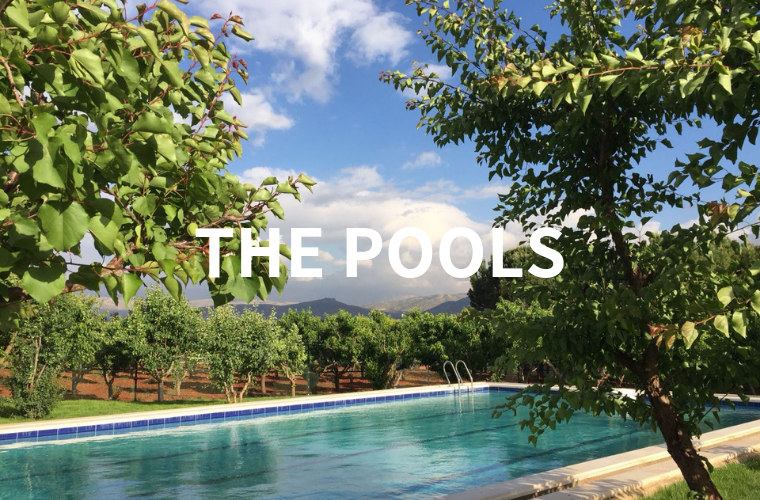 The first pool is nested in the middle of our orchard close to the Stable rooms and facing the animals’ pond and enclosure and is open for kids and adults alike.
